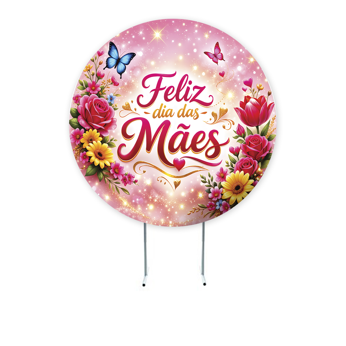 Painel 1,50m Redondo Sublimado Dia das Mães - Helanca Gold 1,5m