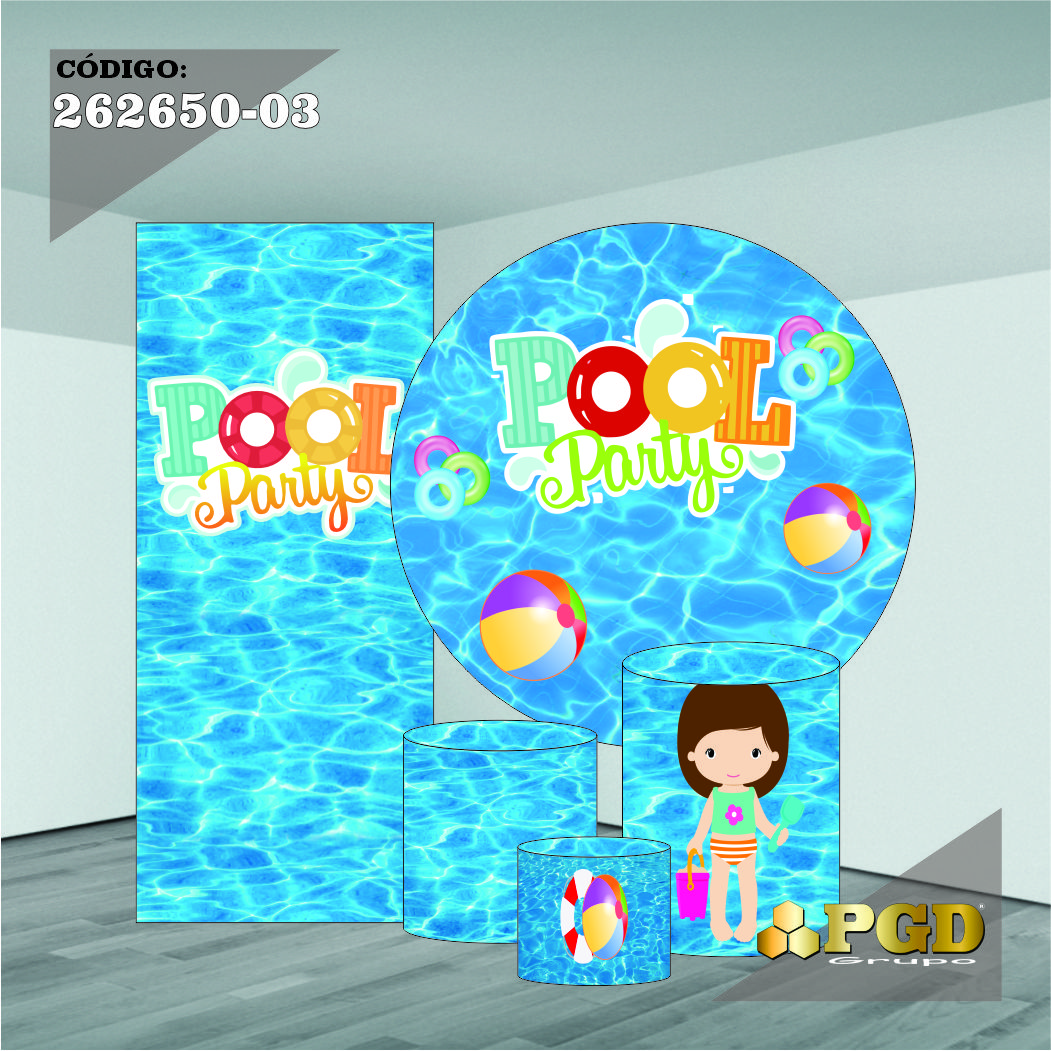 KIT VESTE FACIL P,M,G + PAINEL 1,5 x 1,5 + PORTAL 2,00 x 0,85 MT -  tema - POOL PARTY Modelo 03 TECIDO EM - HELANCA