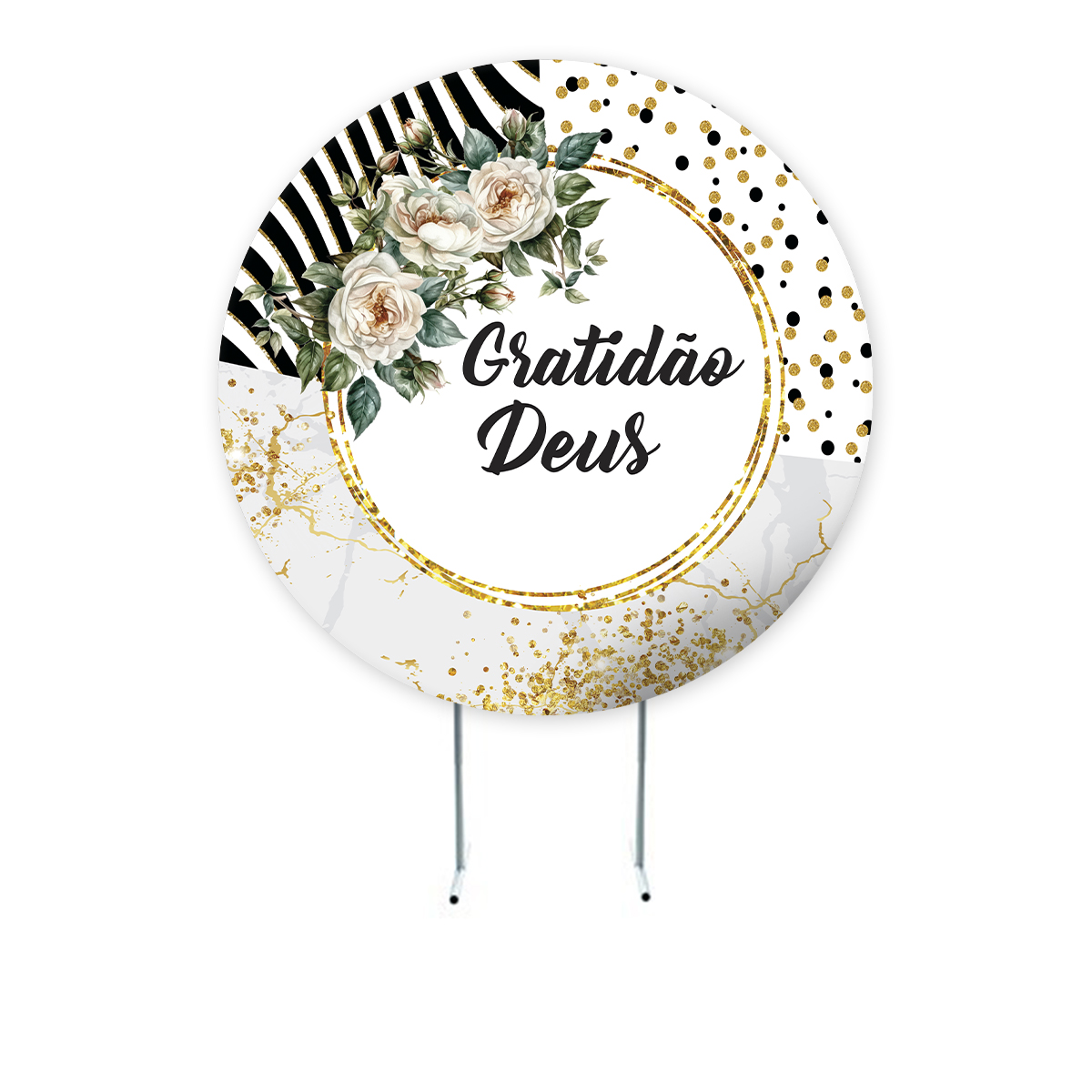 PAINEL REDONDO 1,5 x 1,5 MT - tema - GRATIDÃO Modelo 06 TECIDO EM - HELANCA